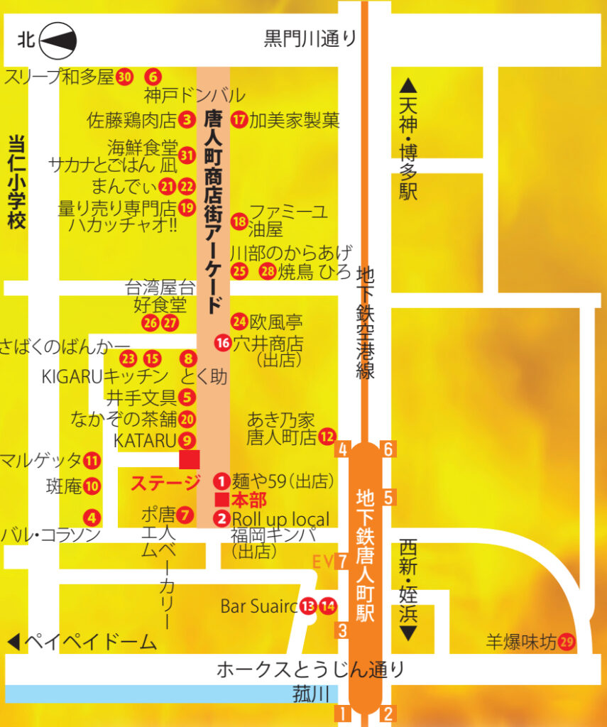 来てくれた人が幸せになる、皆様の記憶に残るイベントで唐人町商店街を盛り上げたい、その一心で九州初のこのイベントを企画。皆様のお越しをお待ちしています。