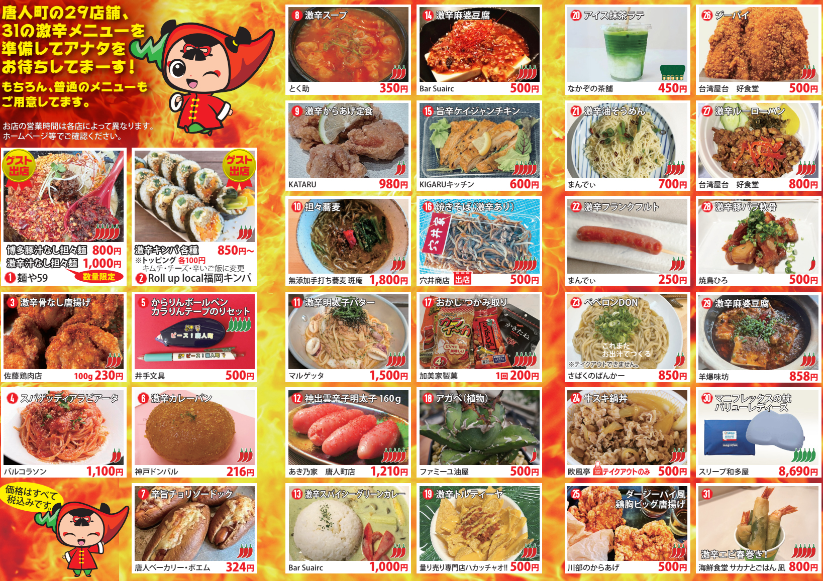 唐人町商店街連合会の各店舗がオリジナルの「激辛メニュー」を販売します!